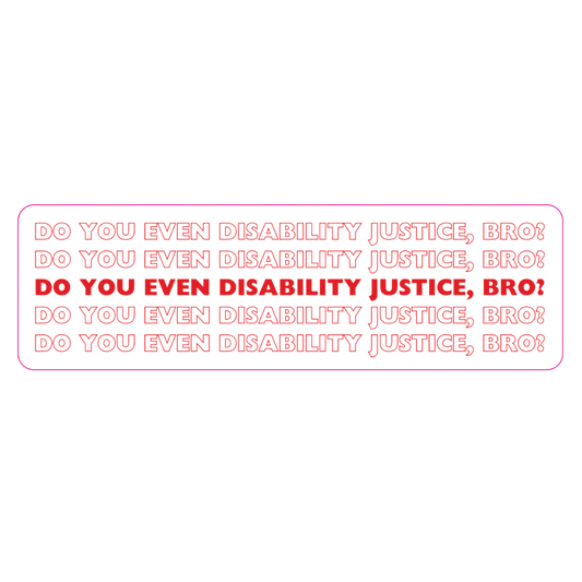 Do you even Disability Justice, bro? 5 Line Take-out Bag Style Sticker